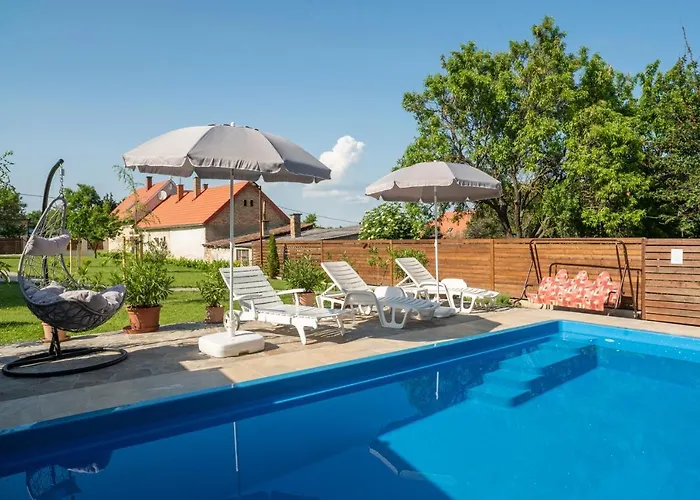 The 3-bedroom Papp Vendeghaz Villa is located a 10-minute ride from Szigliget Castle and provides a private swimming pool, ensuring a relaxing stay. The villa includes parking and a terrace with views of the mountain.